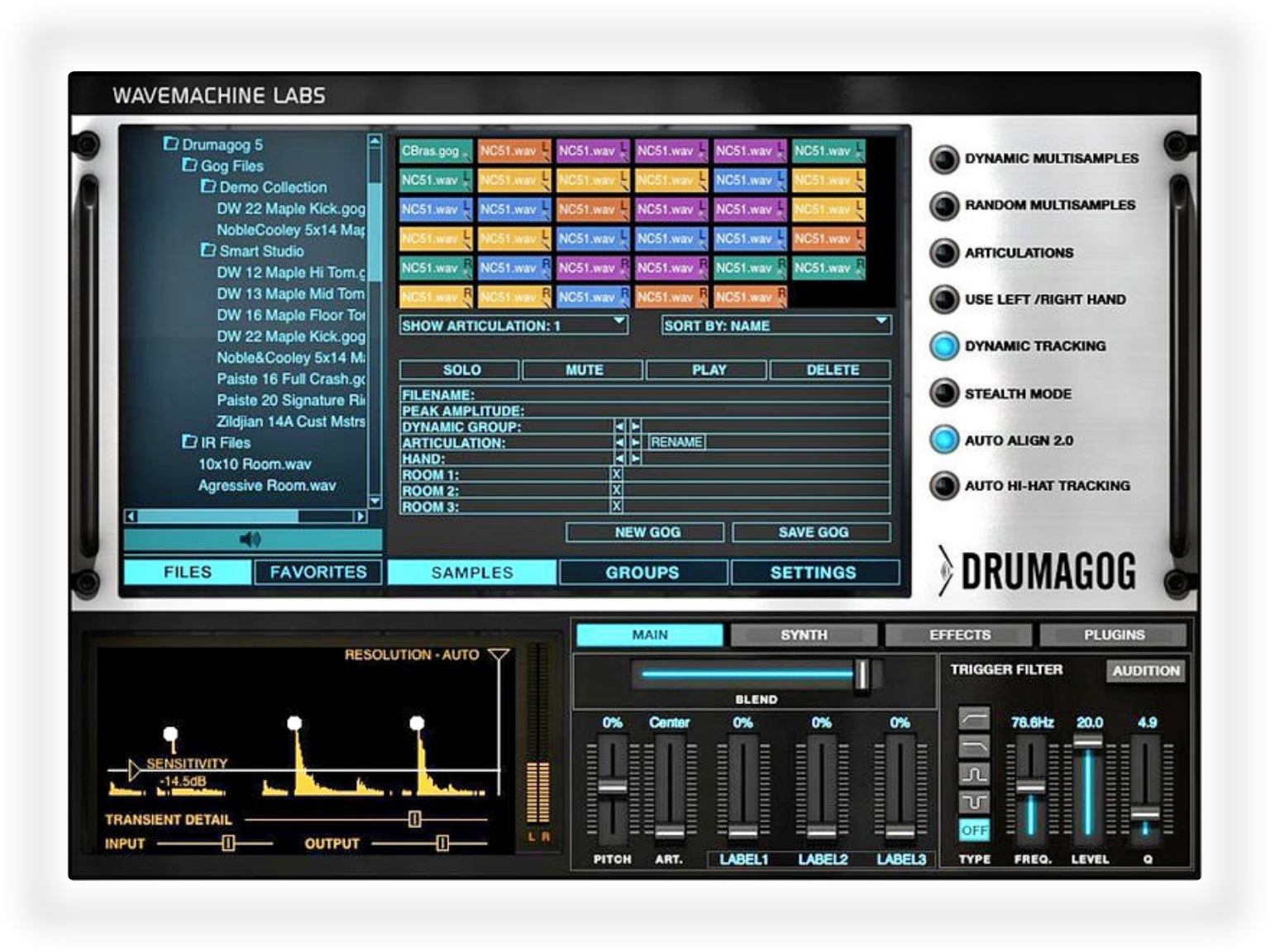 Drumagog supone un concepto totalmente diferente al de la mayoría de los programas de este título, lo que lo convierte en especial y atractivo para muchos profesionales de la industria musical: