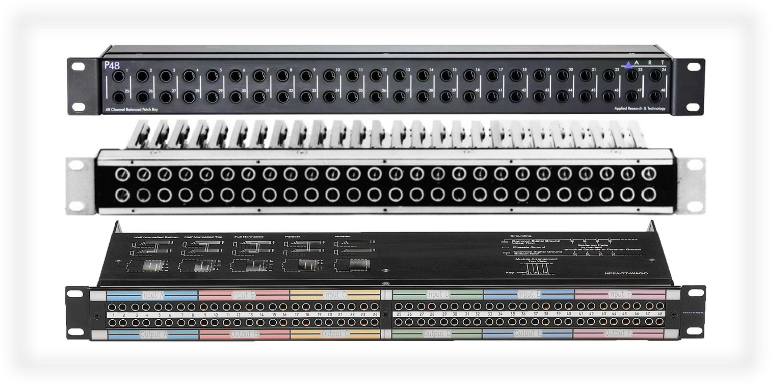 Las cajas de escenario en formato rack guardan, en apariencia, cierta similitud con los paneles de conexión.