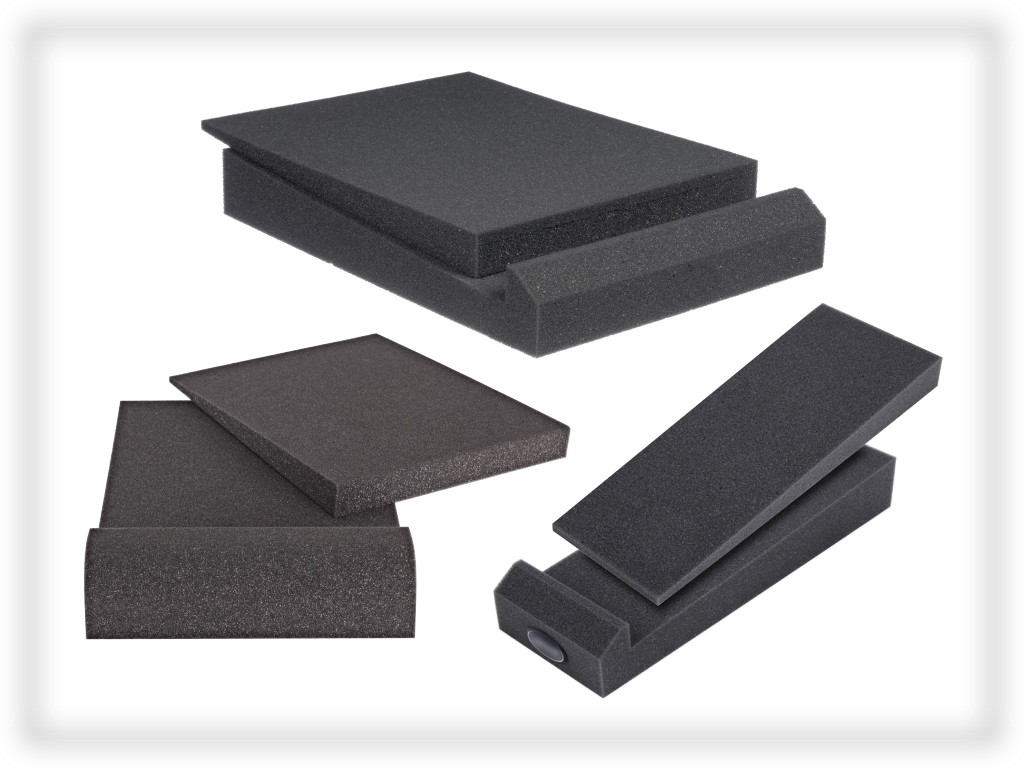 Alfombrillas, esponjas, espumas, pads de aislamiento acústico, o como quiera que se llamen… amortiguan las vibraciones sonoras que el monitor transmite al soporte sobre el que reposa y consiguen aislarlo, en la medida de lo posible.
