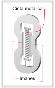 Entre los polos de un imán con forma de herradura, se ubica una lámina metálica estrecha y ondulada (en zigzag) que, al moverse, hace variar el campo magnético. Estas variaciones magnéticas generan señales eléctricas de baja tensión (principio similar al de bobina).