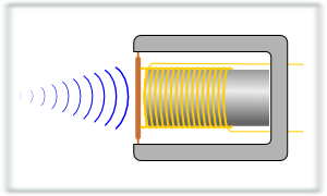 Consta de una cápsula que contiene un sistema formado por una membrana elástica o diafragma, un embobinado de hilo conductor (bobina) y un imán.