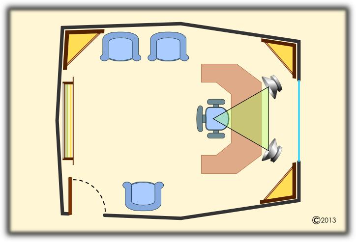 - Los dos monitores y el oyente formarán un triángulo equilátero, de modo que el sonido de ambos se dirija y converja en este último.